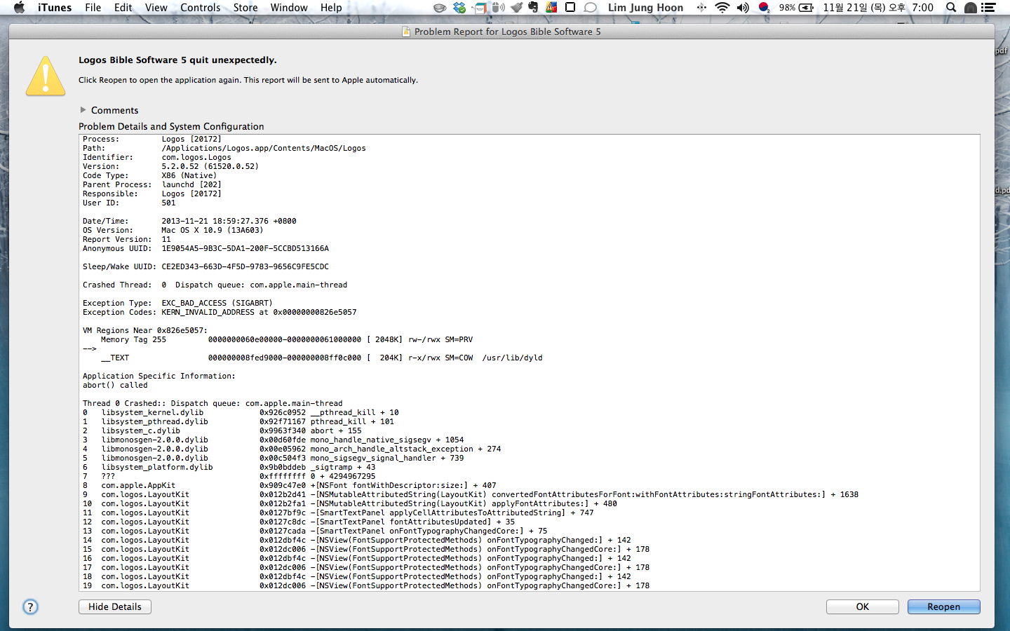 1. The Logos has been crashing consistently each time I try to access a layout.