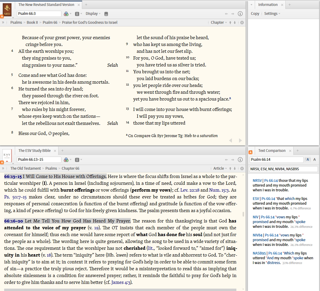 Lets say I search Psalm 65 it will open up the passage guide on the left. NKJV on the right and then under the NKJV I want it to default to a study bible??