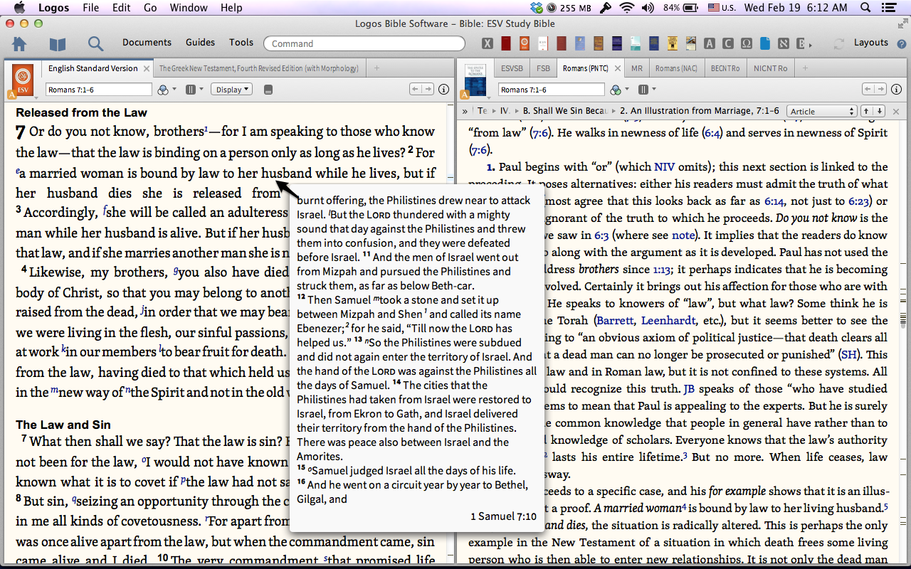 Also, in studying Romans 7, I got a pop-up for 1 Samuel.