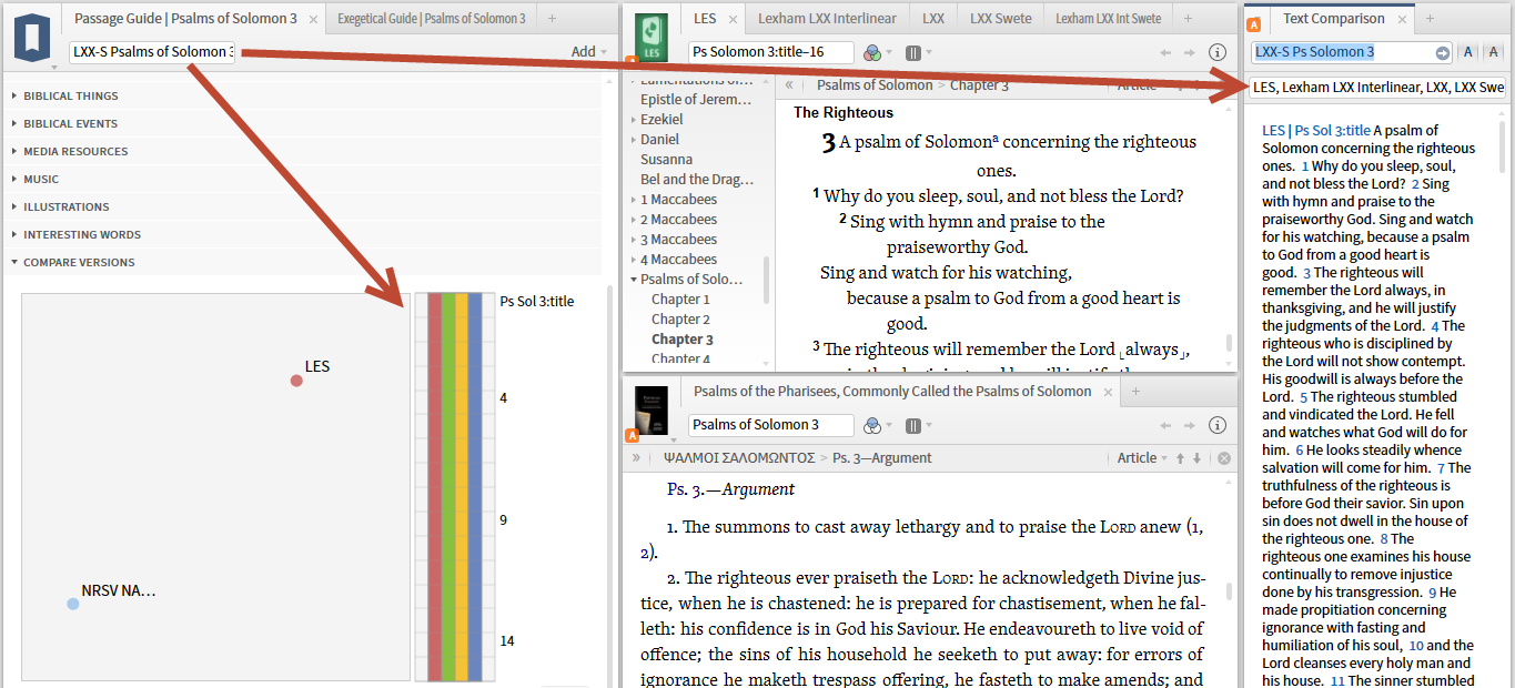 4. The default LXX Bibles also are the Bibles provided in the top center pane.