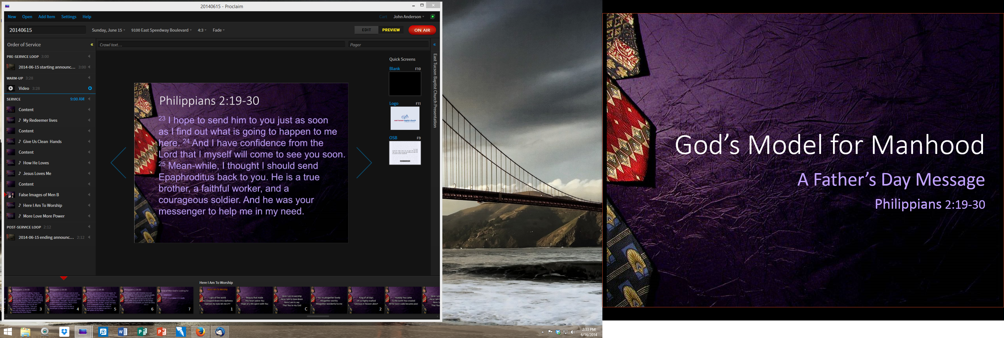 I just updated to Office Pro 2013 for all computers in the office and worship center. I opened Proclaim and low and behold PowerPoint will not work like it did this past Sunday (fortunately, this is only Tuesday). I get a black screen and no slides, no animation, no nothing except a red line at the top and the bottom. As I scrolled through the forum I have noticed a pattern. The new update does not allow transfer control to PowerPoint. The solution: convert them to slides. I do not think this is a solution or a fix. If I can't use PowerPoint within Proclaim I may have to go hunting for another presentation program which I'd rather not do. Isd there a true solution to my problem?