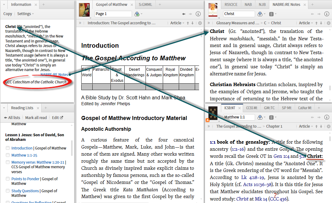 In this example I was hovering over the word underlined in red which gave the shown results in the information window. Clicking on the resource name in the information window opened that resource so I could verify the whole entry. Why? Because I was trying to figure out why the information window had the "Catechism of the Catholic Church" line. is it really interpreting the CCC at the end of the paragraph my word appears in ... or is it the random noise it appears to be?