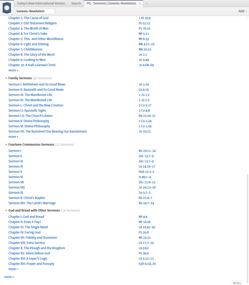 Default is to open the whole thing expanded. If you want to see the list of all resources that might have some useful sermons, it takes a while of clicking more several times to see the whole list, or collapsing each one one at a time.