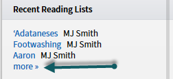 click on the more at the bottom of the Reading Lists segment of the home page sidebar. You are taken to the last reading list you had open ... not exactly "more".