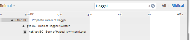 This may be a bug, but when I select "biblical" as opposed to "all" to display events in the timeline tool, Haggai is not to be found (searches for Haggai have hits in all display and none for biblical display).