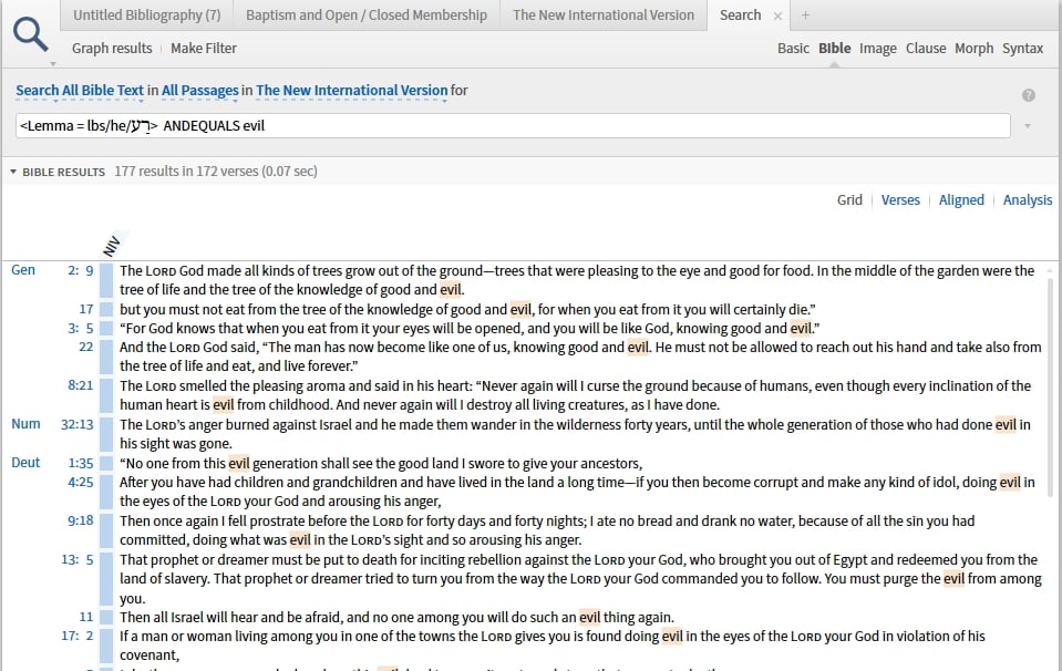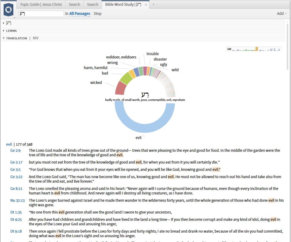 or a Bible Word Study and expand the segment in the Translation window which is translated "evil"