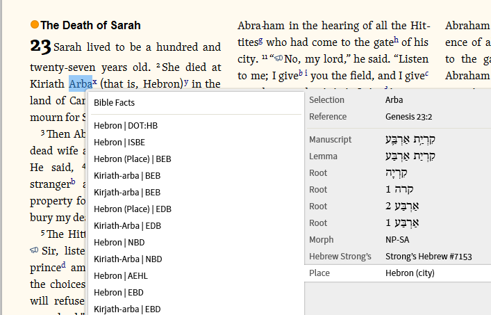 Kiriath Arba is tagged with the placename Hebron as shown below (from NIV)