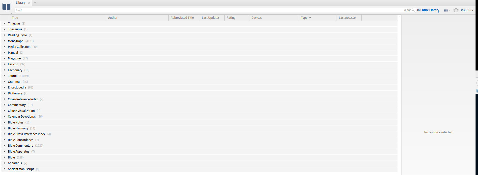 Is there any way to sort a library into groups (bibles, commentaries, dictionaries, etc.)