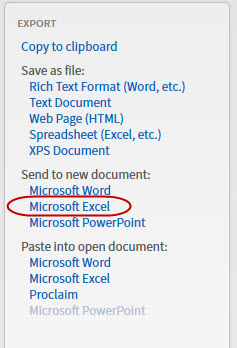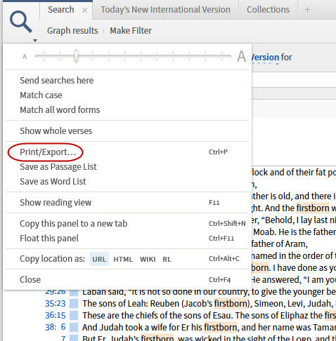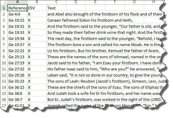 I have done a search for the term "firstborn" in the OT in the ESV and have 132 results. Is it possible to save them all in one go to an excel spread sheet?