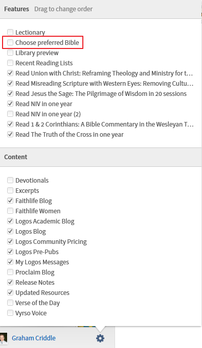 If you click on that the second option from the top should enable the "choose preferred Bible" option