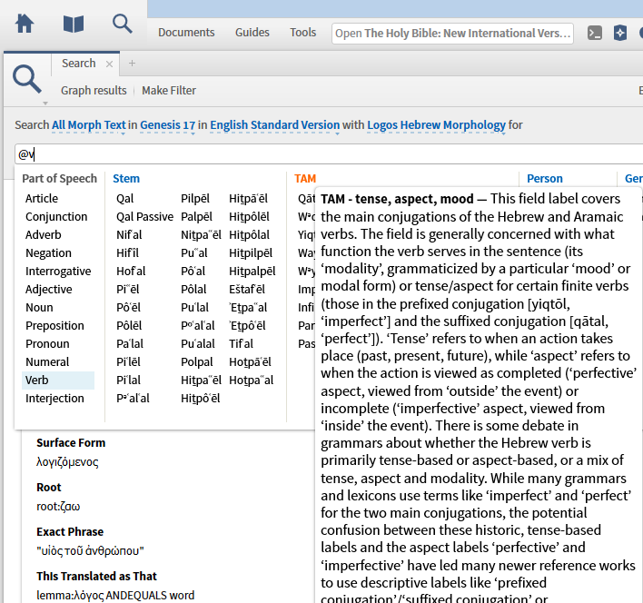 When setting up a morph search you can place your cursor over a term and get a popup with information about it