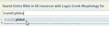 Select translit:phileō from the dropdown of proposed matches: