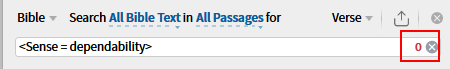 - No hits are found. But this Sense was listed in the flyout and also in the Interlinear panel in the resource [4] so it is there.