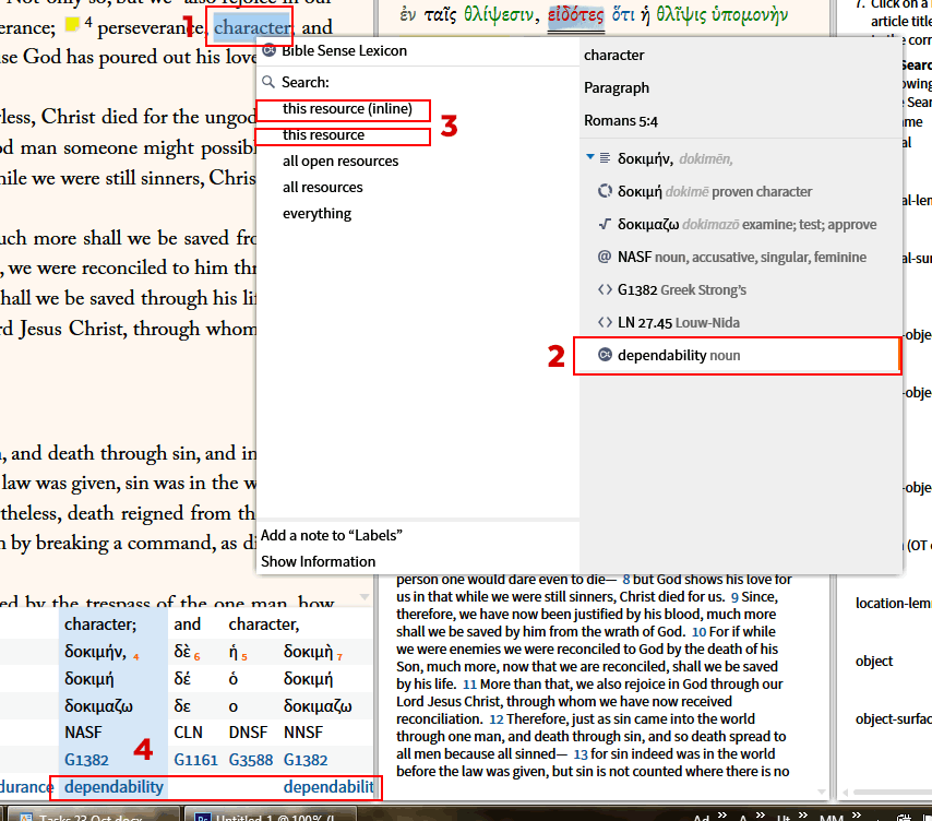 - In Rom 5:4 (NIV) I right click on "character" [1]