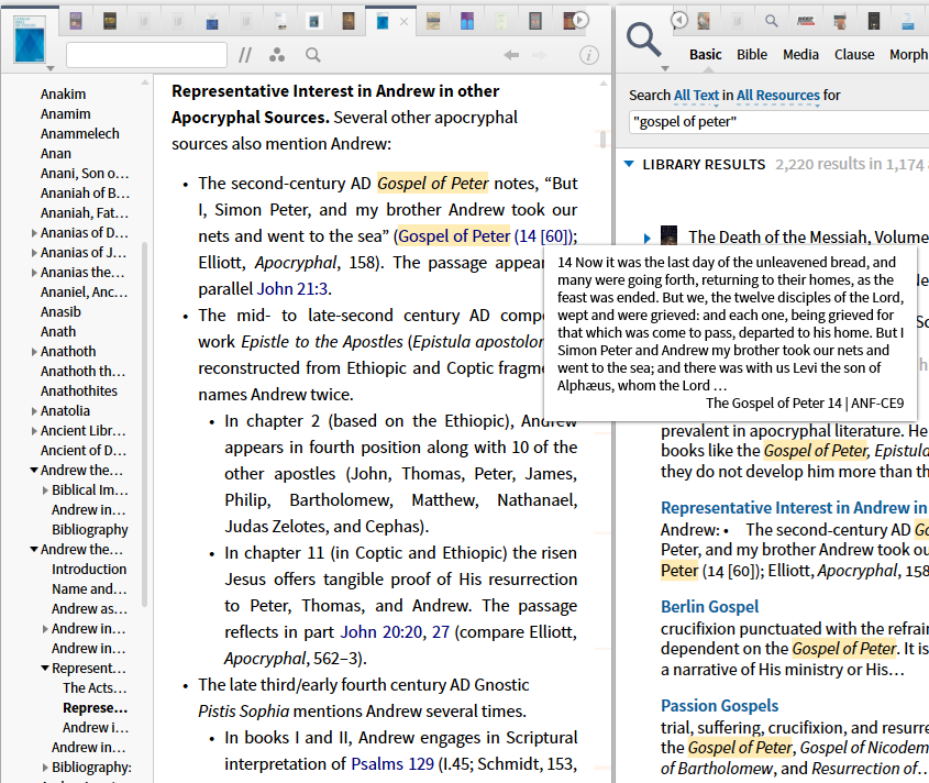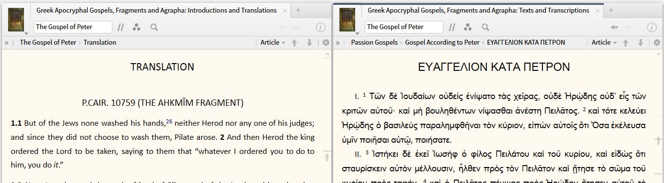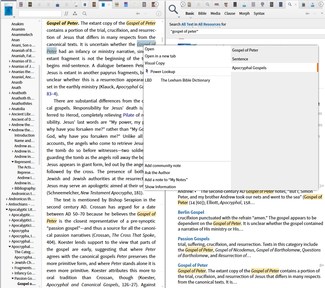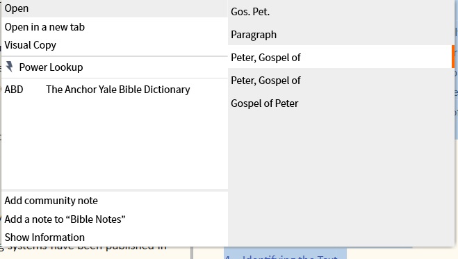 So here I am in ABD looking up Gospel of Peter. There is a hyperlink to it as a reference (Gos. Pet,). I right-click on it, look up what resources it links to under "reference". I get this:
