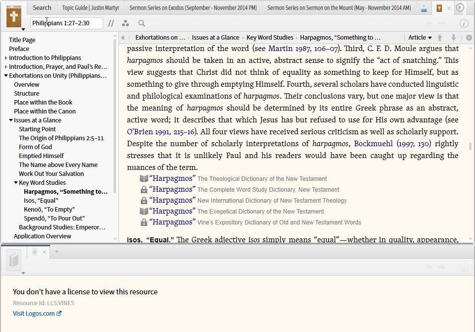 As per that thread the link to Vines from the Lexham Guide for Philippians seems to be incorrectly linked to Vines resulting in it appearing locked even if owned by the user
