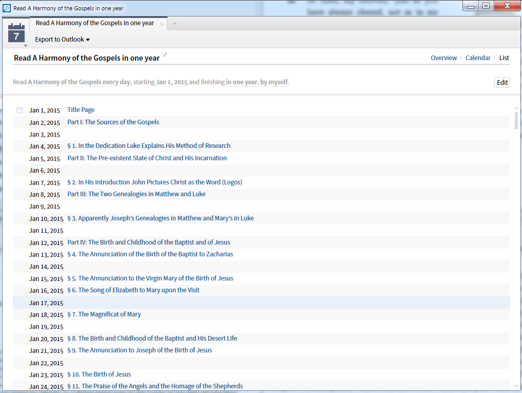 Right now I have just started using the interactive media tool (Bible Events) but there must be a way to generate a reading plan to cover the same events.....