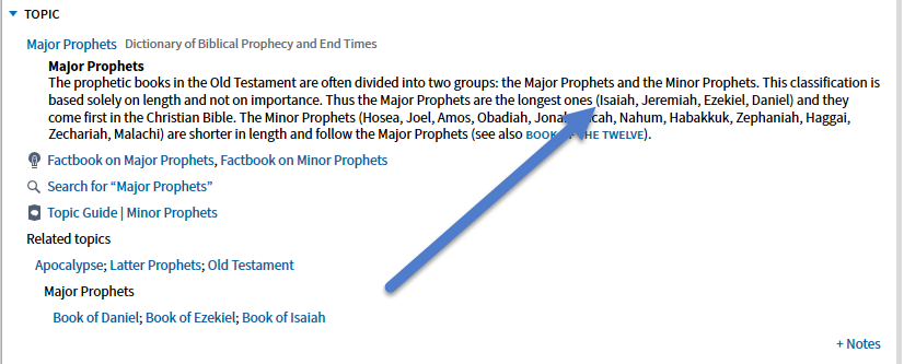 I tried using the Topic Guide to look up Major Prophets and it only displays 3 (Daniel, Ezekiel and Isaiah). I thought that maybe Logos defaulted to display only a few so I used the Topic Guide for Minor Prophets and all 12 are listed. Why would the Topic Guide leave out Jeremiah and Lamentations?