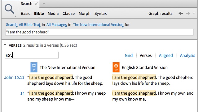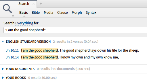 I am trying to do a simple search for a specific phrase in a Bible. I cannot figure out how to make that work.