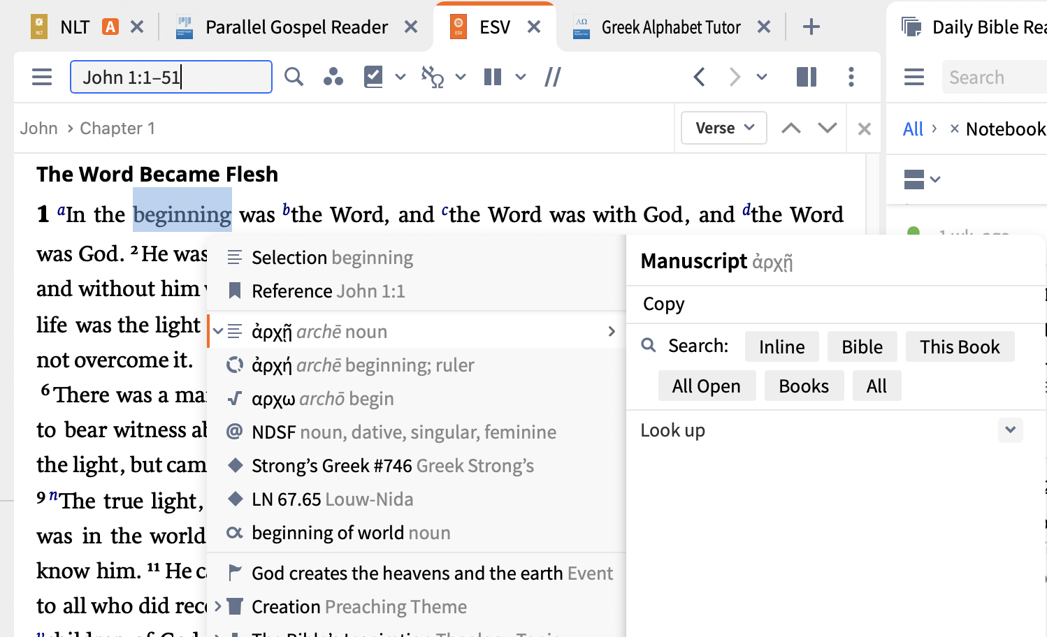 This happens whether I have the English word, the manuscript form or the lemma selected.