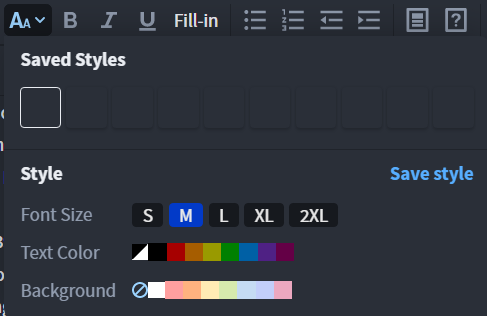 In addition to my additional comments on this thread which I hope don't get ignored, it looks like the font/style menu has regressed slightly? I don't remember the color swatches being so close together, and it doesn't indicate what the current color is. (I may be imagining things).