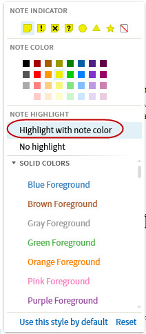 However that kind of note does not allow the option of "Highlight with Note Color" like the notes attached to a particular selection do.