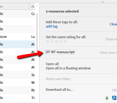 Then I opened the library, and in the search window, I typed mytag:manuscript and all the books I have tagged that way were listed below.
