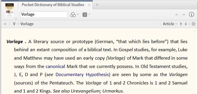 So, what's happening? Have some words been overlooked in tagging them as dictionary entries? Is there something I don't get that I need to do differently? And how in the world do I make sure that pocket dictionary of biblical words comes up (when it does) rather than the pulpit index though the first is in my list of prioritized resources while the second certainly is not? For the time being I have placed the latter in hidden resources, but it is not an ideal solution and it does not solve the first problem.