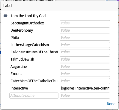 I am perfectly capable of entering label attributes in the order in which I want them to appear - an order with logic and meaning. However, Logos prefers to be illogical and random - presenting the attributes to me not in my sequence nor in alphabetic sequence. This is not cool at all and Phil just told me we had cool features coming.