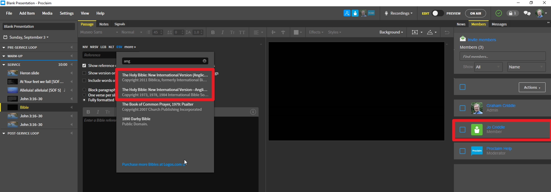 However, my wife - who doesn't own these versions but is a member of the same Proclaim presentation group - doesn't find them. Is this expected or is something wrong?